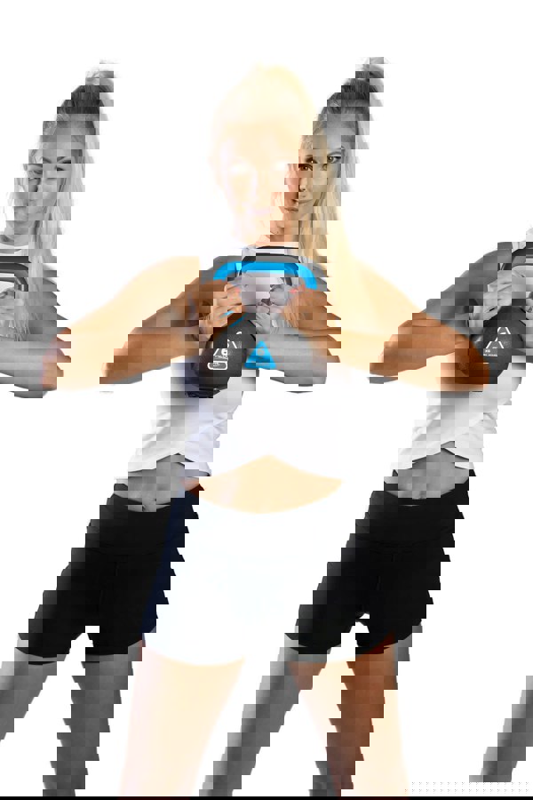 The Azure 6kg Toning Kettlebell can be used for a great number of exercises to target the core, legs, glutes, arms, shoulders and back.