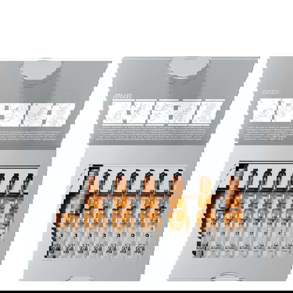 Apply morning or evening after cleansing. Shake the ampoule, then wrap a tissue around the neck or use the enclosed ampoule opener. Snap open at the lower coloured ring, pour into your palm and smooth over face, neck and décolleté. Pat in gently, then apply your regular moisturising cream.