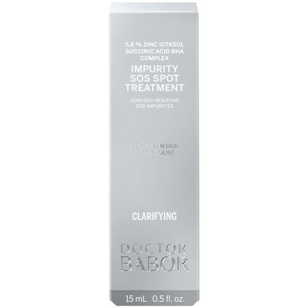 Created for targeted use on blemish-prone skin, DOCTOR BABOR Impurity SOS Spot Treatment is a local gel treatment for precise application where needed. The formula contains an active complex that supports the combat against the appearance of impurities and works to speed up the life cycle of imperfections.