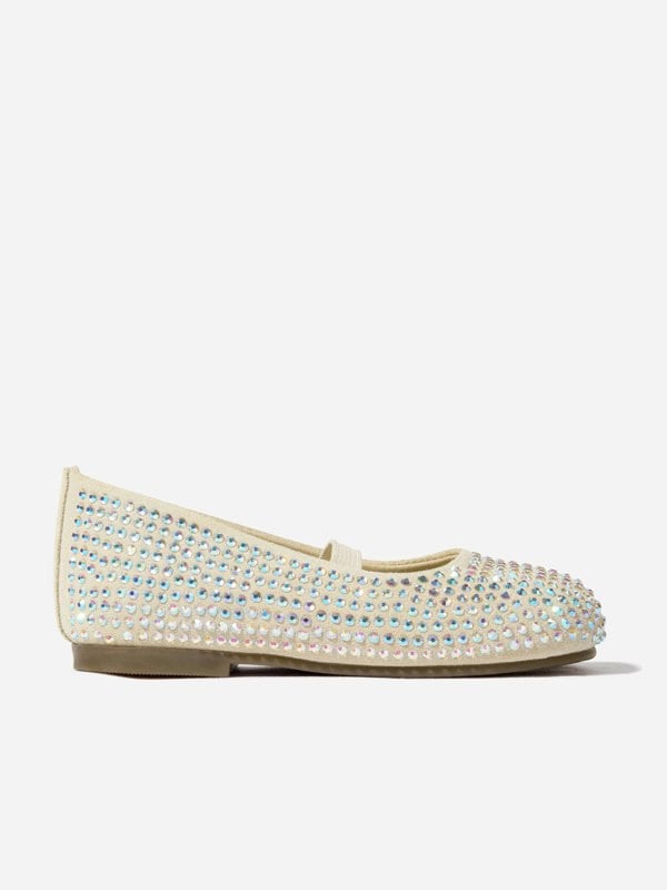 Baby Girls Leather Diamonds Allover Ballerinas in Beige