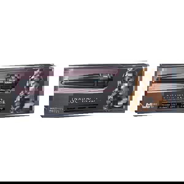 Features of the BaByliss Pro Porcelain Conical Wand:32mm tapering to 19mm. Commercial grade Porcelain barrel has an ultra-smooth surface, giving hair a shiny, glossy finish. No spoon/spring lever for quick, easy styling. Ultra fast heat-up. 25 temperature settings for total styling control. Heat ready indicator system - red and green lights flash during heat-up. Steady green light indicates unit has reached selected temperature. Soft touch handle for comfort and control in use. Includes finger shieldsIncludes heat mat. Salon length swivel cord.