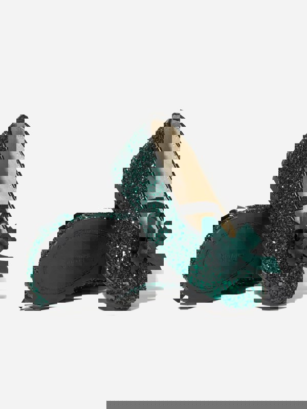 These girls ballerina pumps bring a modern twist to a classic shape. The upper combines bovine leather with a glitter fabric finish, set in an all-over emerald green sequin effect. A bow at the front completes the look with a neat, decorative detail.
