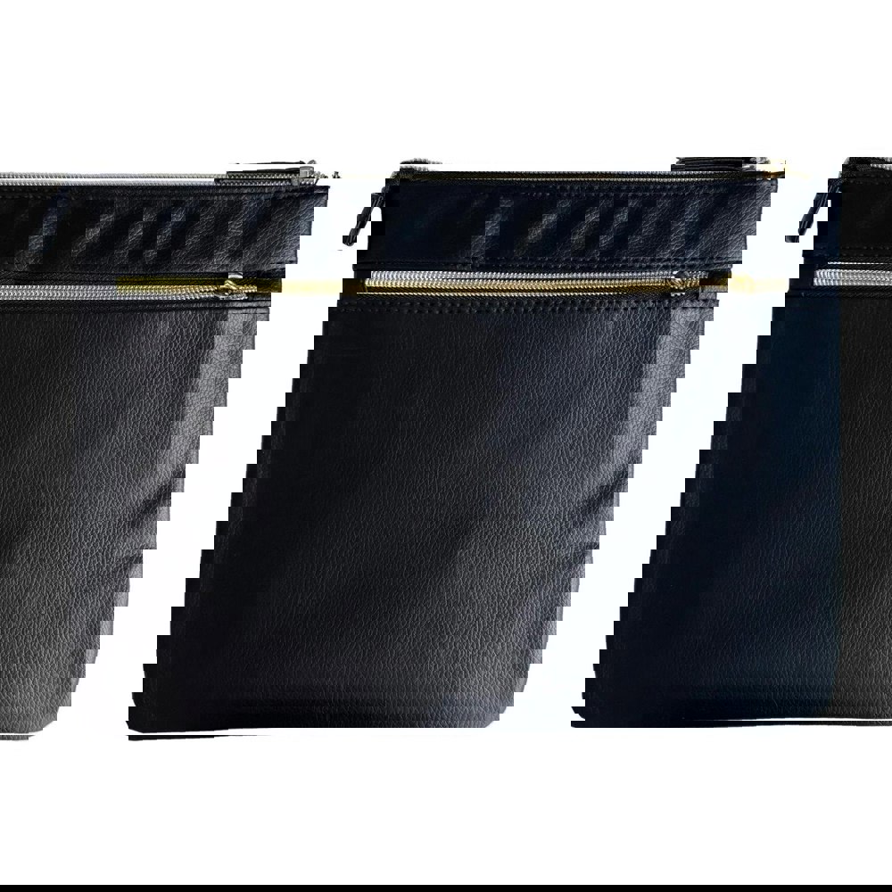 One Direction - Between Us Black Cosmetic Toiletry Bag with two large storage compartments with gold zippers.