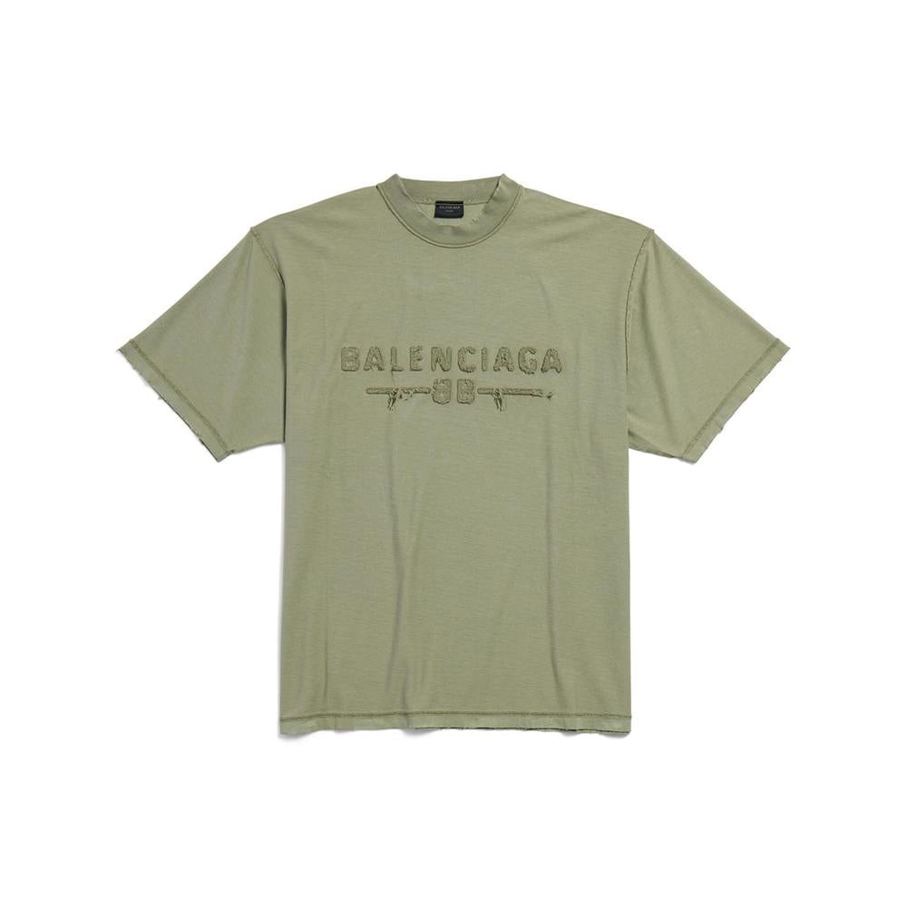Crafted from premium 100% cotton, this vintage-inspired Balenciaga Inside Out Medium Fit T-Shirt in Army Green showcases an intentional inside-out aesthetic with exposed seams and visible labelling - a hallmark of contemporary design. The crewneck silhouette and short sleeves offer timeless versatility, while the signature logo patch artwork at the front delivers distinctive visual impact. Cut to a medium fit for effortless everyday wear, this piece merges deconstructed tailoring with refined simplicity, making it an essential addition to any discerning wardrobe