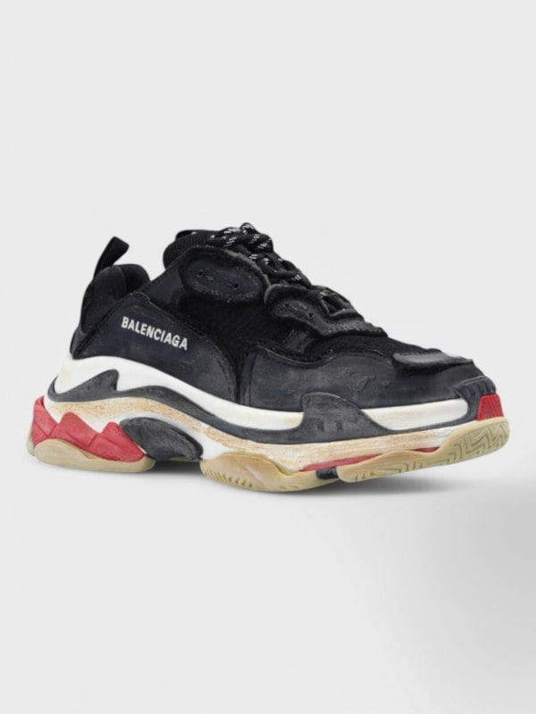 Experience the bold and unique style of the Balenciaga Wmns Triple S Sneaker 'DIY - Black Red'