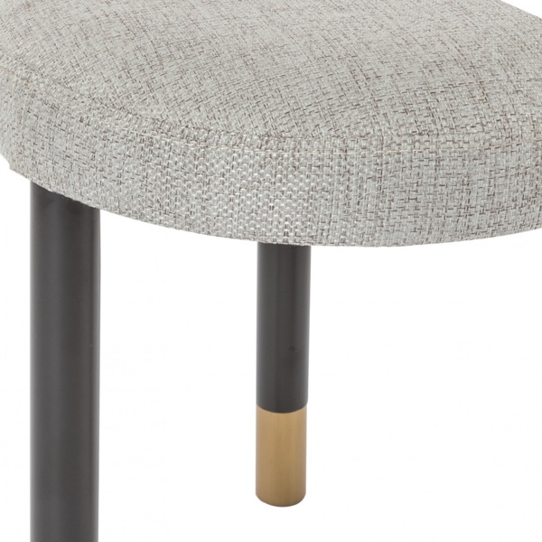 The Bali Circular Stool blends comfort with sophistication, making it an elegant addition to modern interiors. Upholstered in a soft stone grey fabric, it is paired with bold black horizontal legs and finished with brass-capped feet for a refined touch. Compact, comfortable, and versatile, this stool is ideal for use as a standalone seat or as the perfect match to the Bali Dressing Table.