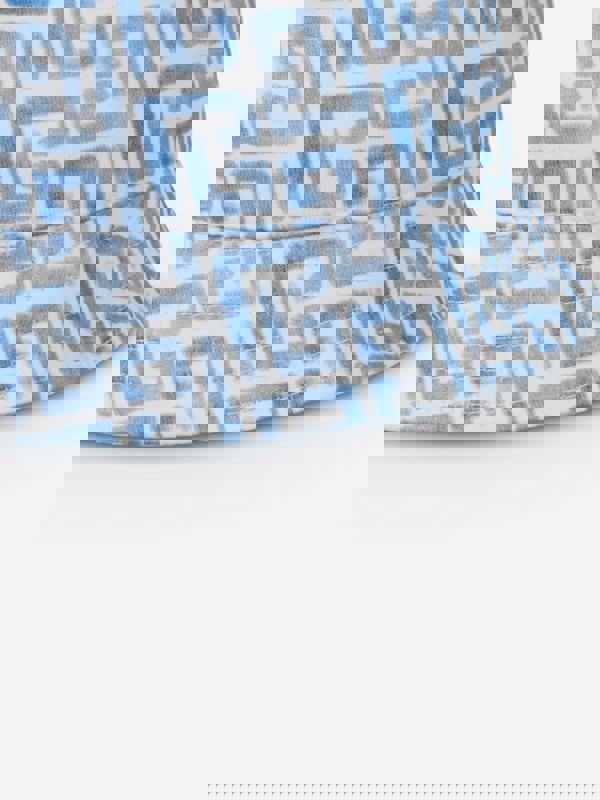 This unisex bucket hat from Balmain presents ornate imagery as a fashion portrait, finished in a blue geometric print. The design reflects the French label’s signature aesthetic, with monogram logo detailing for a distinctive look.