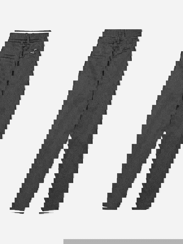 These Balmain boys suit trousers come in black with a stripe design for a sharp, tailored look. The blended wool fabric is finished with practical pockets and a button fastening at the waist. A straight hem completes the clean silhouette, keeping the detailing minimal and formal.