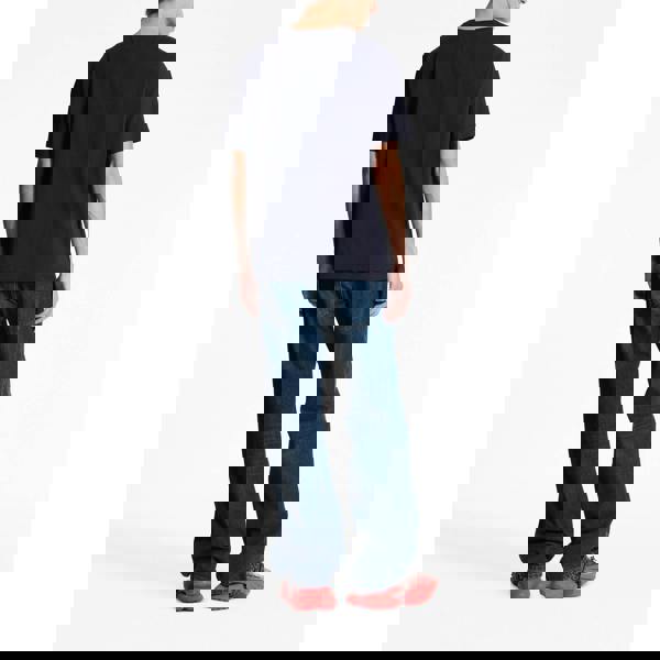 Balmain ensures the recognisability of this navy blue T-shirt by featuring its logo in a contrasting red flocked print at the chest