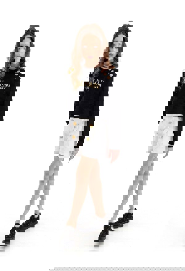 These Balmain girls shorts come in white with gold-tone detailing and a military-inspired look. The front is finished with double gold coin buttons, creating a structured, button-front style. Practical elements include pockets and belt loops, while the signature ‘Balmain Paris’ label adds a distinctive branded finish.
