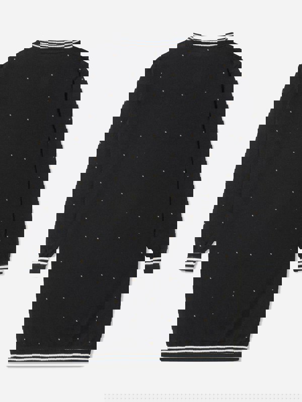 This girls’ wool knitted dress from Balmain comes in black and is made in Italy. A Balmain logo sits prominently on the design, giving the piece a clear branded finish.