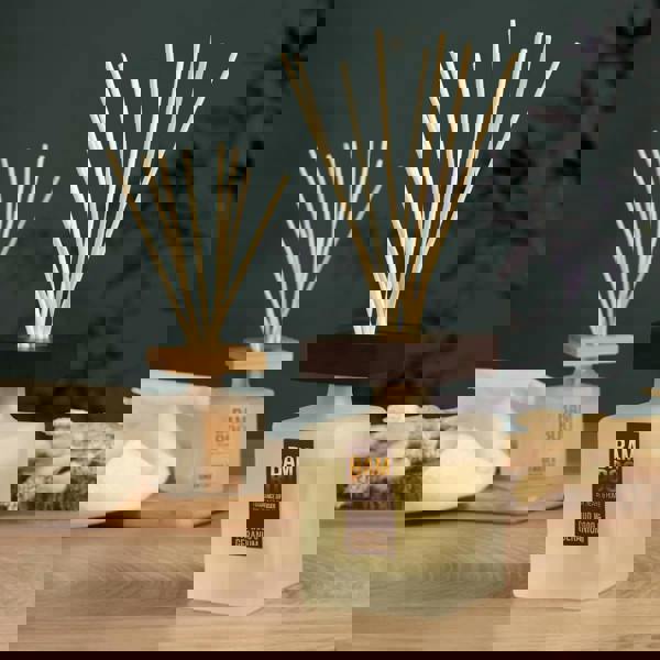 The scent opens with a rose top note, moves into a geranium heart, and settles into a warm oudwood base. Supplied with 8 rattan reeds and presented in a natural kraft gift bag, it makes a considered choice for gifting or for refreshing your own space. Fragrance time lasts up to 16 weeks.