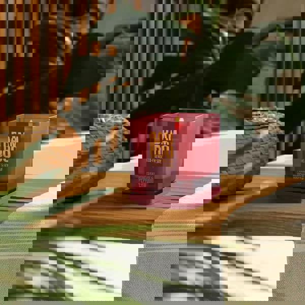 The fragrance combines juicy pomegranate with rich patchouli, warmed by spicy pepper for a subtle, sensual aroma that suits everyday unwinding as well as relaxed evenings at home. Finished with an unsealed wooden lid for easy access, the lid can also be used as a coaster for the candle.