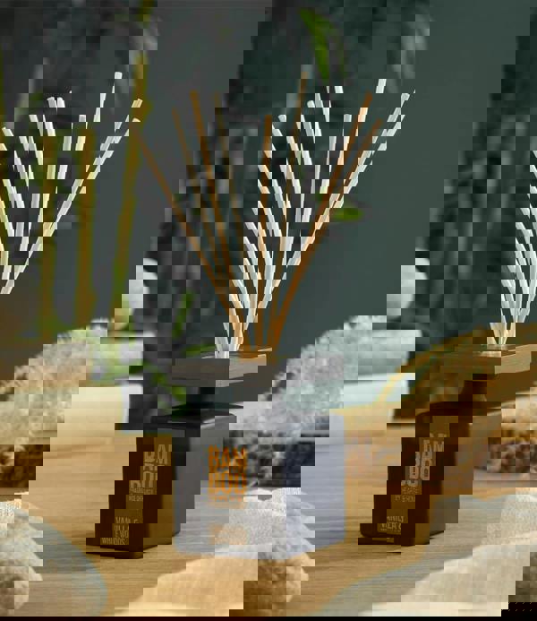 From Bamboo, the Vanilla & White Woods Large Fragrance Diffuser brings a contemporary focal point to your home, combining a distinctive frosted glass design with a bamboo wooden lid in a hue selected to suit the scent. Designed to sit beautifully in living spaces and open areas, it offers a consistent fragrance presence while adding a considered decorative touch.
