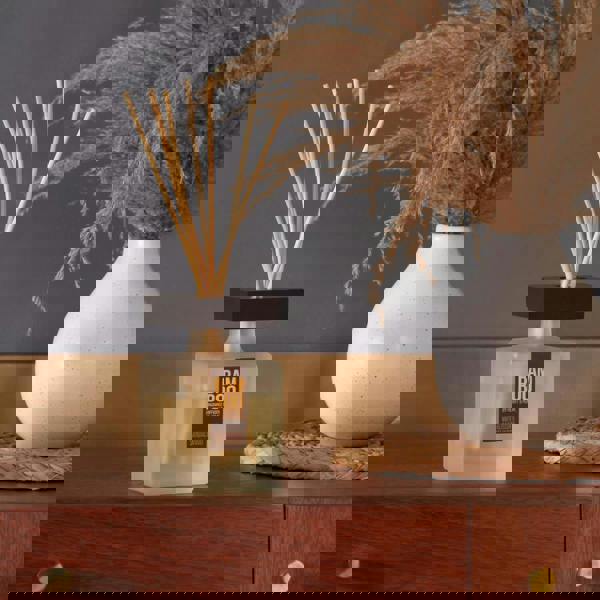 Designed to stand out on a console, shelf or side table, the Bamboo White Blossom & Sandalwood Large Bamboo Fragrance Diffuser pairs frosted glass with a distinctive contemporary silhouette. Finished with a bamboo wooden lid in a hue that varies by scent, it brings a considered decorative touch while gently scenting your space.