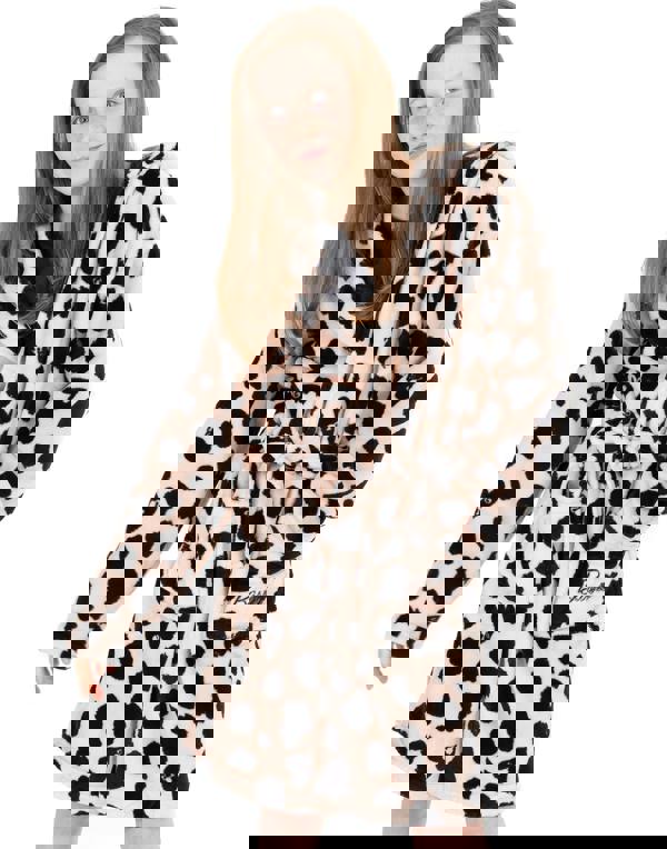 Wrap up snuggly in this girl's soft fleece Barbie dressing gown; it is perfect for getting cosy on a cold evening! Officially licensed and exclusive to Vanilla Underground, the children's bathrobe comes in a cream and black leopard all-over print and features a Barbie logo across the back and handy pocket