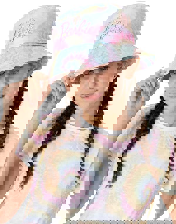 The colourful tie-dye sun hat features a luxury pink embroidered Barbie logo that is eye-catching and sure to turn heads