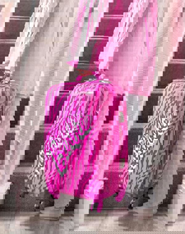 With a vibrant pink zebra pattern and a Barbie logo, this Barbie suitcase is perfect for any fashionista.