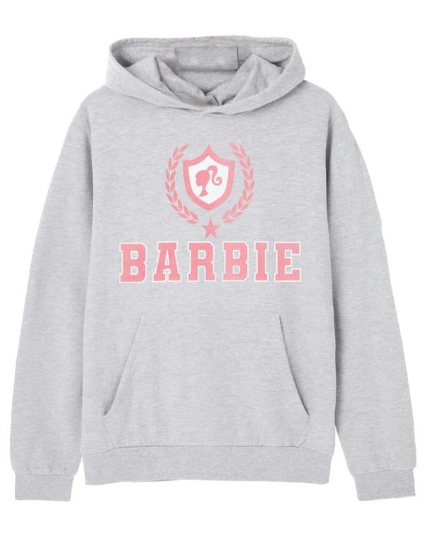 Elevate your Barbie style with our Barbie Collegiate Logo Women's Grey Marl Hoodie