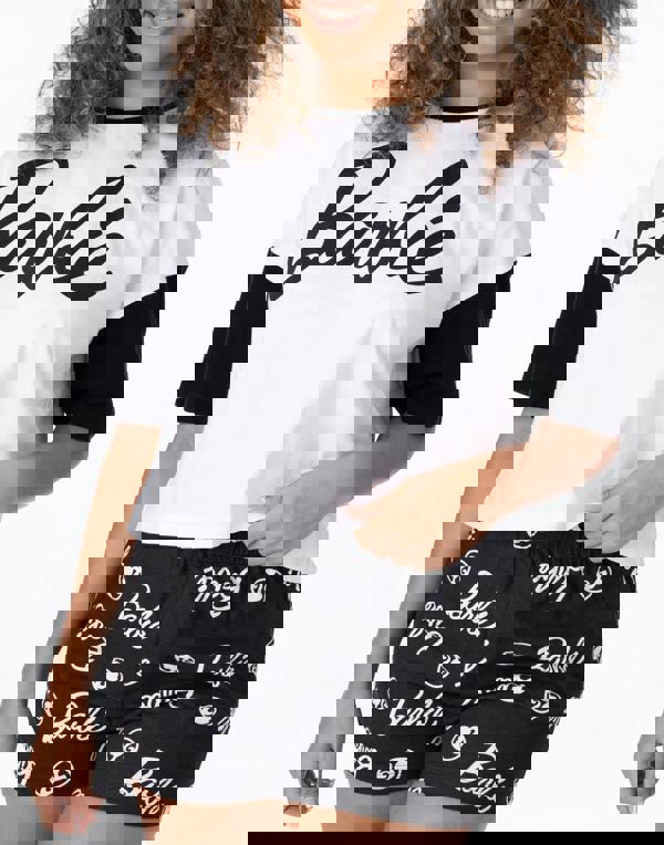 These women's short pyjamas! This stylish set features a trendy, boxy-fit cropped t-shirt in crisp white with contrasting black sleeves and matching black shorts for the perfect combination of comfort and style