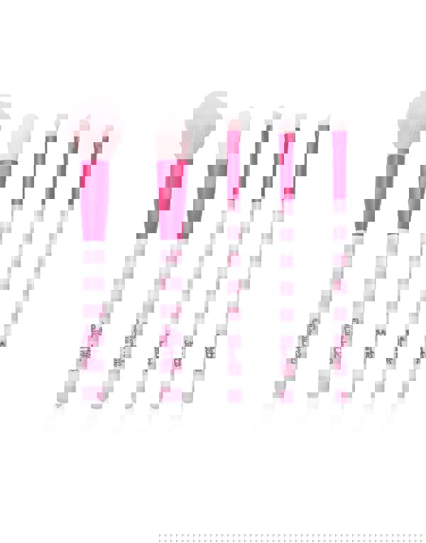 Step into a world of glamour with the Barbie Women's Makeup Brush Set! Perfect for fans of the iconic doll, this set includes striped soft beauty face brushes and a stylish zip-up storage case in signature Barbie pink.
