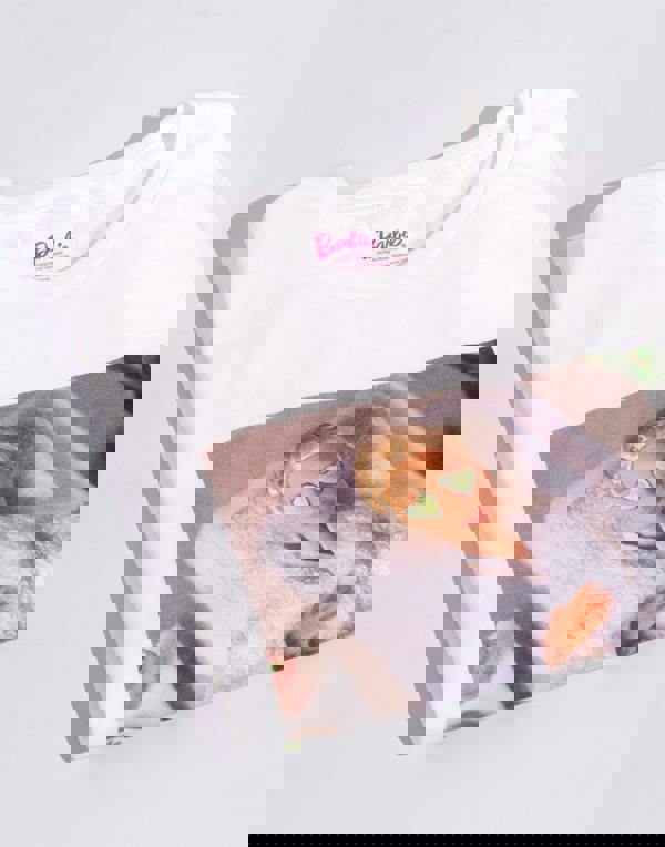 Work from home in Barbie style! The top for women comes in white featuring Barbie, the iconic doll, working from home whilst having a spa day
