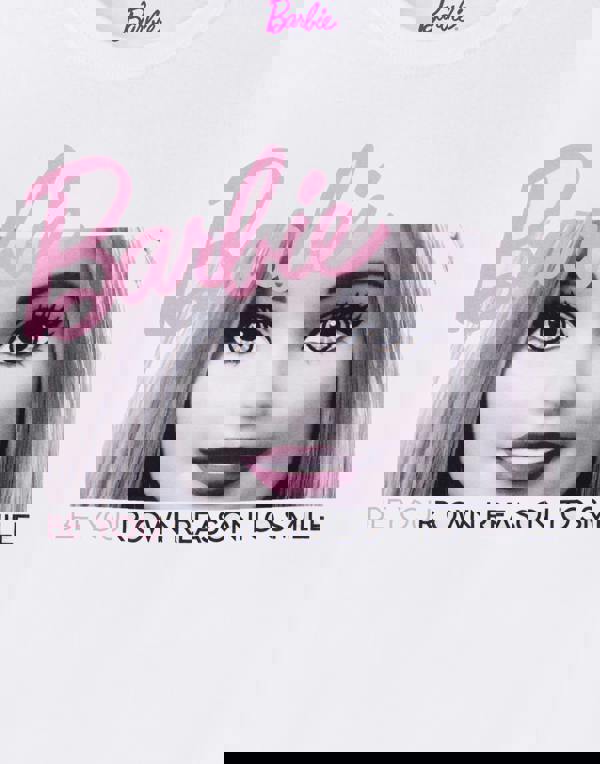 Be the reason you smile by wearing this Barbie oversized t-shirt for women! Officially licensed, the ladies white top features Barbie the doll smiling with a pink logo and motivational quotes 'Be you' and 'Be Your Own Reason To Smile', making a must-have gift for birthdays, Mother's Day, Christmas, and all special occasions
