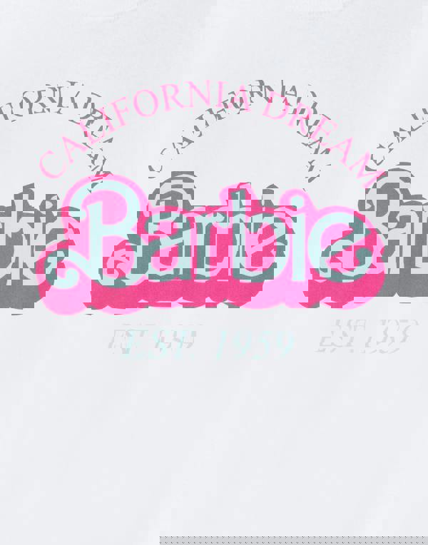 With its crisp white canvas adorned with the iconic Barbie logo and the nostalgic "Est