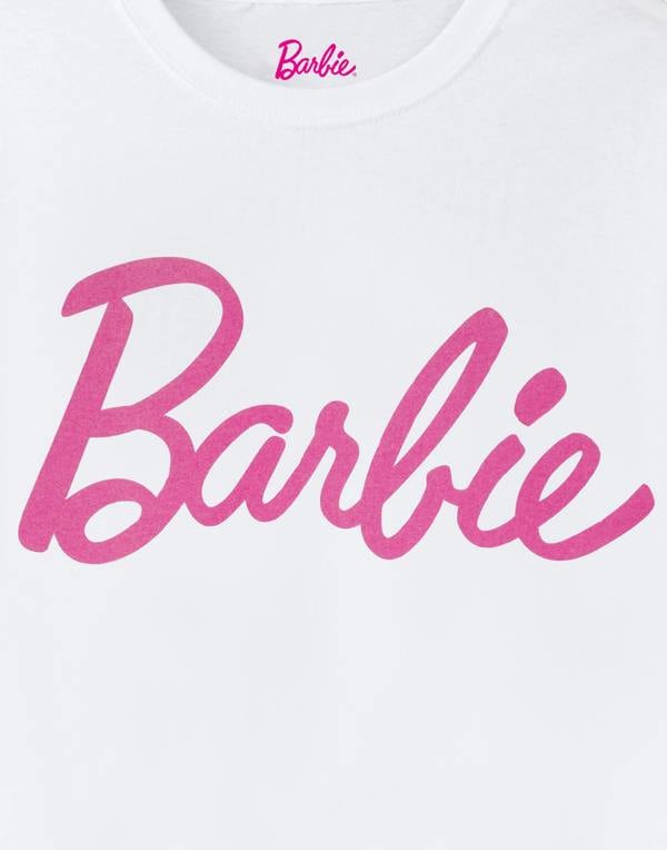 This t-shirt features the classic vibrant pink Barbie logo, adding a playful touch to your outfit