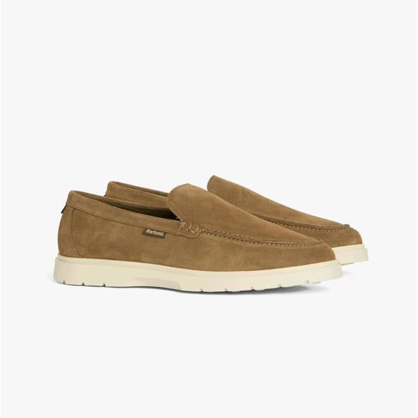Clean lines and a classic shape define the Barbour Carty mens loafer shoes. Finished in taupe synthetic suede, this slip-on pair keeps the profile understated, with a round toe that suits a polished everyday look.