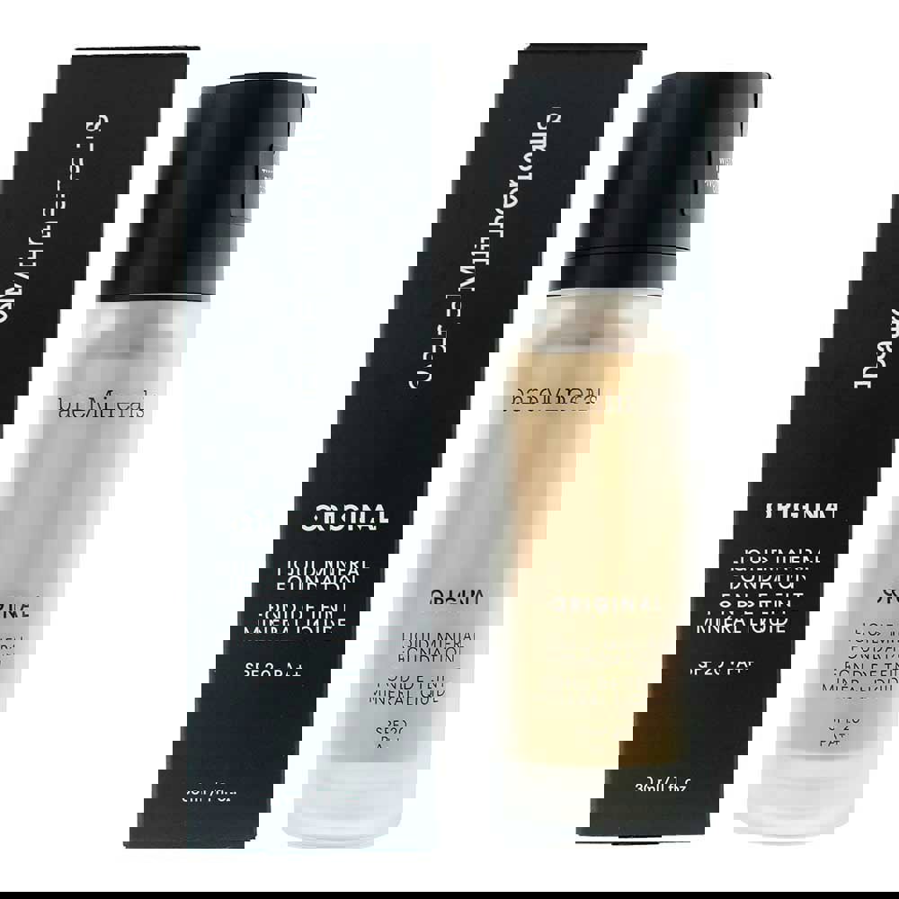 The bareMinerals Original Liquid Mineral Foundation SPF 20 is a clean, medium-coverage liquid foundation that visibly improves skin's texture and reduces pore size over time. It sets and extends makeup wear while providing broad-spectrum sun protection. The formula is dermatologist-tested and suitable for various skin types.