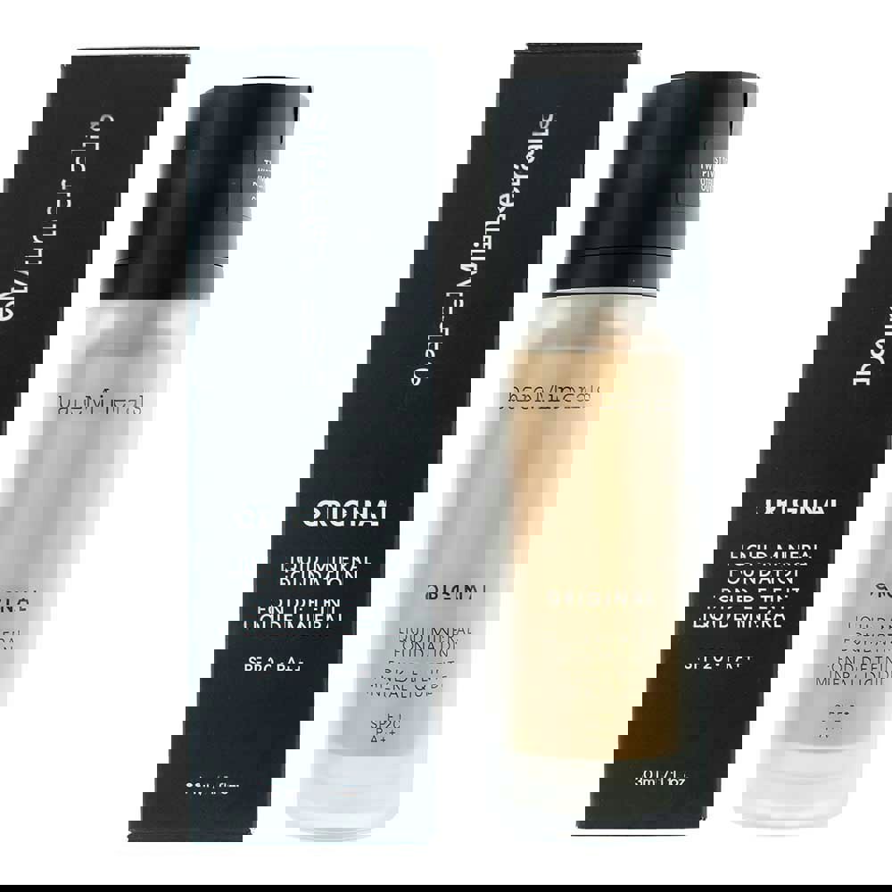 The bareMinerals Original Liquid Mineral Foundation SPF 20 is a clean, medium-coverage liquid foundation that visibly improves skin's texture and reduces pore size over time. It sets and extends makeup wear while providing broad-spectrum sun protection. The formula is dermatologist-tested and suitable for various skin types.