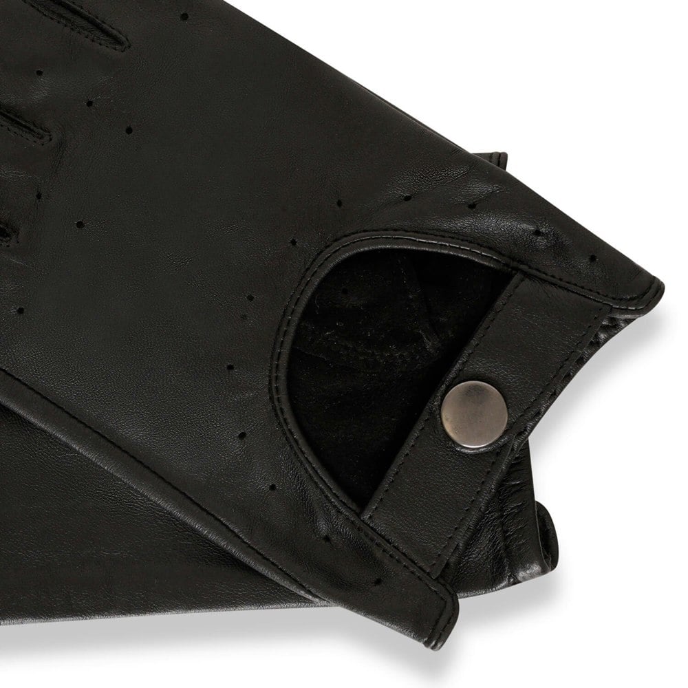 Crafted with the finest sheep Nappa leather, these gloves offer a luxurious and buttery soft feel against your skin. The black leather exterior not only looks elegant and timeless but also provides exceptional durability and resistance to wear and tear. Whether you're navigating the city streets or embarking on a long road trip, these gloves will withstand the elements and last you for years to come.