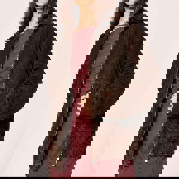 Oversized, cosy and luxuriously soft. Say hello to our brown suede bomber jacket. Your new favourite daily staple to bring a touch of relaxed luxe to any outfit.