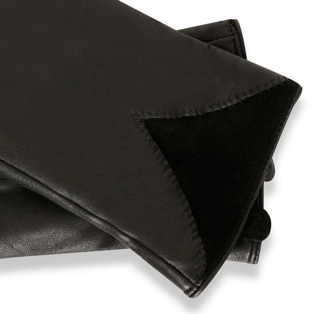But what sets these gloves apart is the addition of super soft goat suede cuff detailing. The contrast between the sleek black leather and the plush suede adds an element of sophistication and style. The suede cuff not only looks great but also provides an extra layer of protection against the cold, making these gloves perfect for transitional weather.