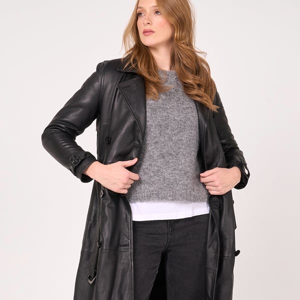 Surprisingly lightweight, this soft and supple full length trench coat adds a touch of drama to your daily essentials. Dressed up or down, this Barneys Originals real leather trench coat never misses. Throw over last minute casuals for an effortlessly styled look - or go all out by layering over formalwear for date night. The tie belt has extra room for those who prefer the 'tied together' look - and each cuff has subtle buckle detailing.