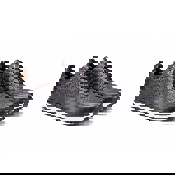 Base London brings a clean, casual finish to everyday styling with the Lancaster trainers. Made with a leather upper in navy, this mens pair is set on a rubber sole and finished with a classic lace-up fastening and round toe. A textile lining keeps the interior streamlined, while Ortholite cushioning is built in for added underfoot support. Regular width and a flat heel profile make them an easy choice for day-to-day wear.