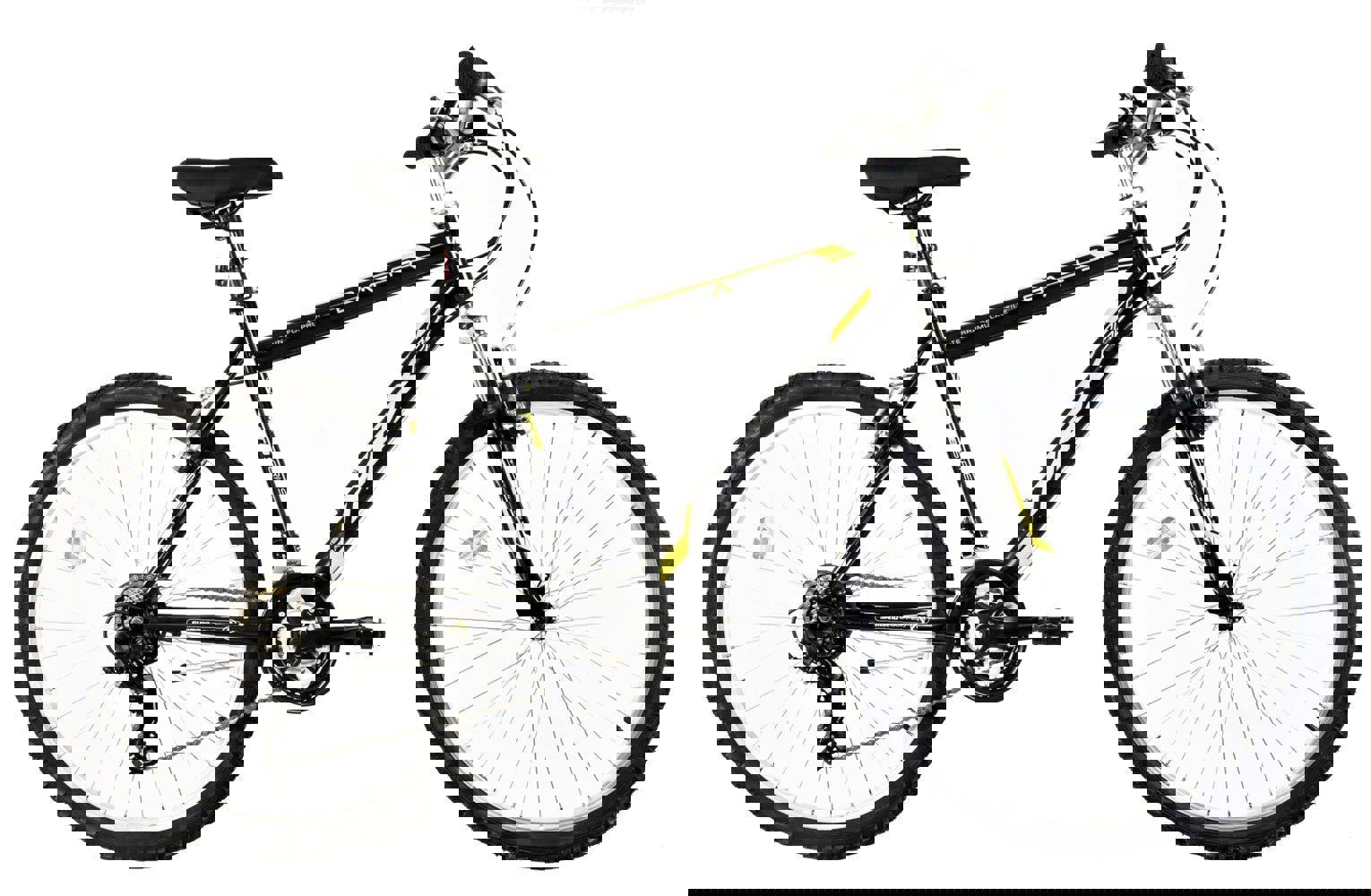 Alloy V-Brakes take good care of controlled slowing, while a Shimano 18 speed Revoshift gearing system really broadens the bike's ability and gives those with limited gearing experience, a change to get to grips with it. . . No pun intended.