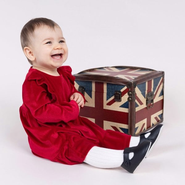 These black pre-walker baby shoes, from our Baypods collection, are beautifully made in soft faux leather and have a dainty holed pattern on the toes. In a t-bar style, they are easy to put on and secure with a button fastening strap. They have a lightly cushioned insole and their flexible soles are just right for developing feet. .