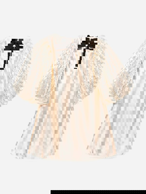 This girls occasion dress from BCBGMAXAZRIA comes in a gold finish with a satin construction. Sequin balloon sleeves add texture and contrast, while a laid on zip and bow details complete the look. Made from polyester, it offers a clean, structured silhouette suited to special events.