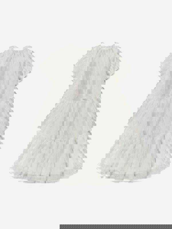 Ideal for parties and celebrations, this dress is made to catch the light as she moves, while the ruffle detailing creates a flowing, statement finish.
