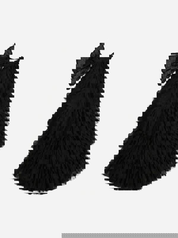 The BCBGMAXAZRIA Girls Tiered Tulle Halter Neck Dress in black is a sophisticated choice for special occasions. Designed to bring graceful movement to her look, it features a tiered tulle finish that creates a light, layered silhouette. A halter neckline adds a modern touch, balancing classic styling with a contemporary feel.