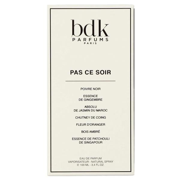 Designed for evenings with a hint of intrigue, Pas ce Soir by BDK Parfums is an eau de parfum that balances modern sensuality with polished elegance. A juicy pear note brings an immediate lift, setting a luminous tone before a subtle thread of spice adds depth and anticipation.