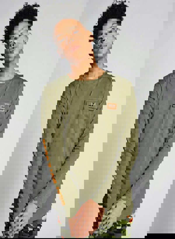 Classic transeasonal Street Style. The Boardy long sleeve tee is a new Beat Boyz wardrobe essential. In our standard Khaki with orange pop branding to the sleeve and chest you can easily mix and match this top with many other styles in our range.