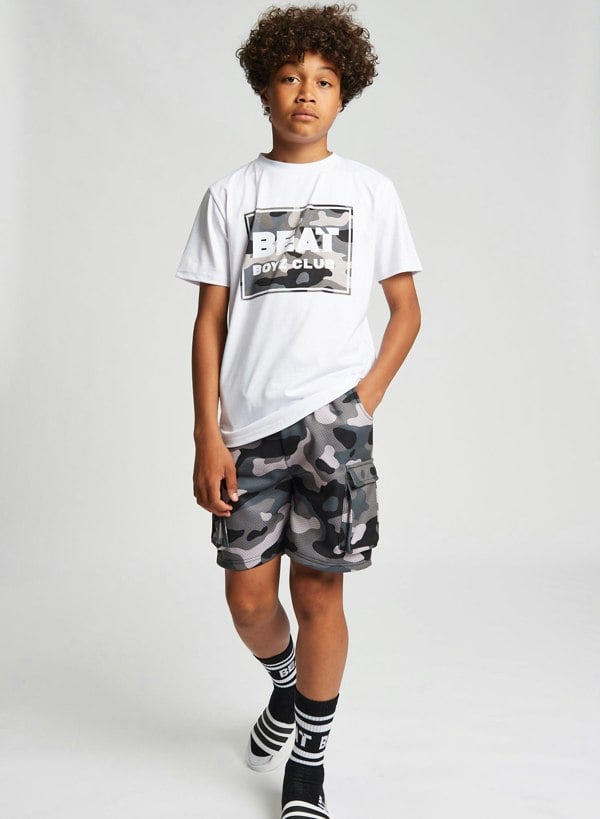Comfortable, stylish and fantastic quality, the perfect combination for on-trend kids. Our Revolve shorts are a soft fleece fabric in a bold Camo print with branded drawcords and combat pockets.