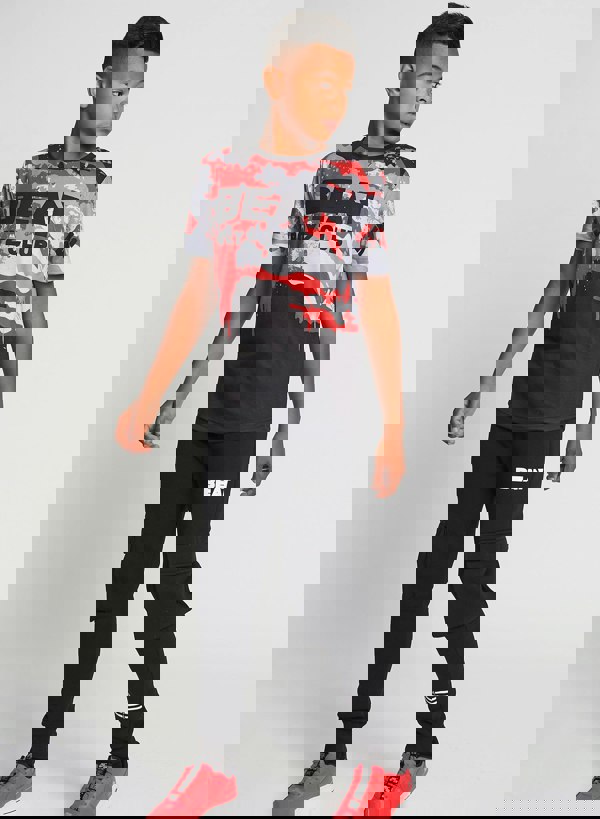 Get weekend ready with this boy's Shredder Camo Tee. In a red and black camo print design, made in a soft poly fabric this tee will keep you looking and feeling fresh. Classic Beat Boyz style with a crew neck, short sleeves and curved hem finished off with the statement bold Beat Boyz Club chest logo.