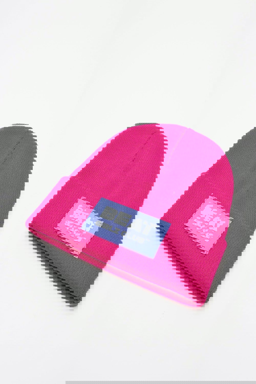 Get winter-ready with our Beat Girls knitted beanie hat. In a shocking pink colour way with a Beat Girlz Club large statement rubber badge to the front turn up.