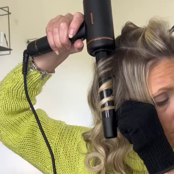 Simply wrap a section of hair around the barrel, hold for around 8 seconds, then press the Cool Shot button to release cold air and set the curl. Repeat section by section.