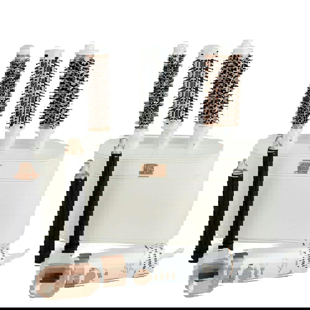 Fast, flexible styling comes together in the Beauty Works Aeris Multi-Styler, a multi-styler that dries and shapes hair with six interchangeable attachments. An aviation grade brushless digital motor delivers high velocity airflow, powered by a 1200W motor for high-speed drying and styling. Advanced ionic technology produces up to 30 million negative ions, while digital temperature and speed control keeps heat and airflow precise as you work.