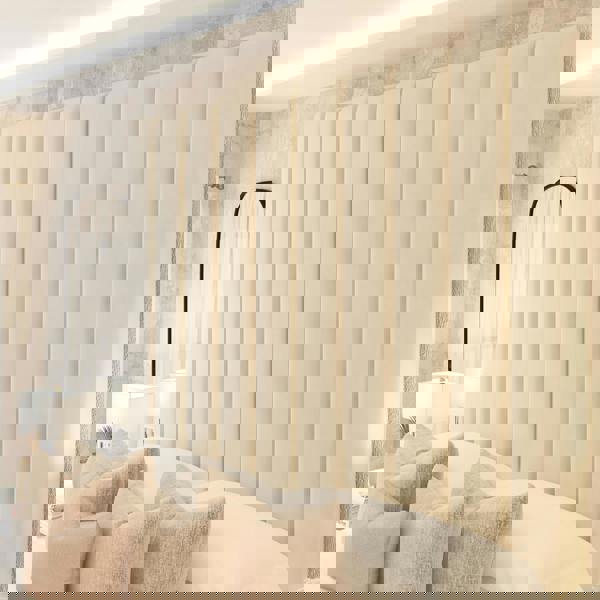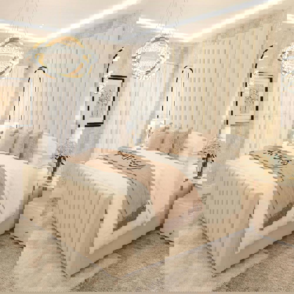 A split headboard formed in two separate pieces adds a considered design detail, while the tall profile helps to frame the bed as a focal point within the room. With its understated styling, it’s an easy way to introduce texture and a tailored feel to your space.
